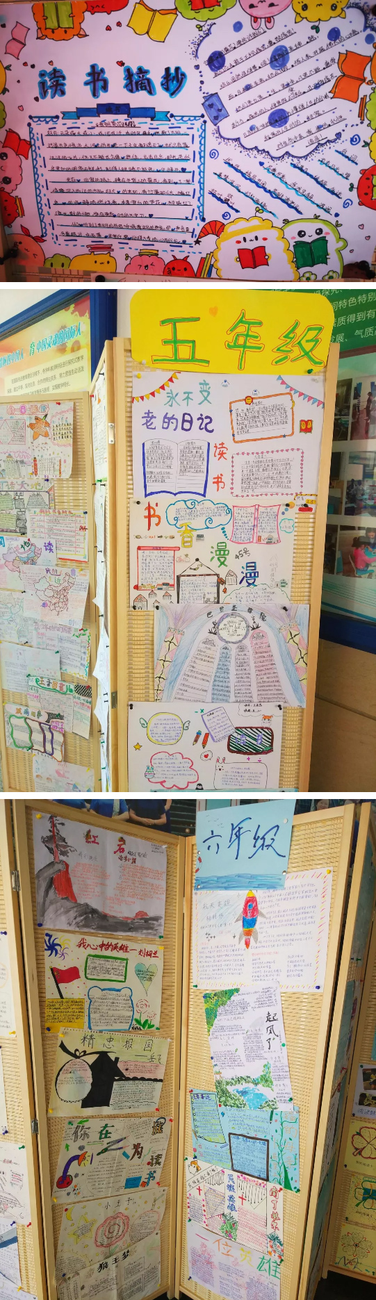 四、五、六年級同學辦的讀書小報色彩鮮艷,內容豐富,創意無限。