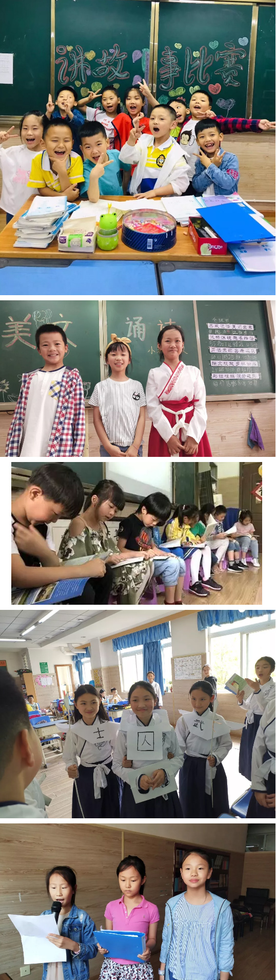 在近兩個月的時間里,各年級分別開展了“故事會”、“故事新編”、“美文誦讀”、“小古文誦讀比賽”、“課本劇表演”、“背誦小達人”等比賽活動。