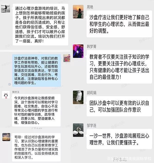 半天的培訓(xùn),正能量滿滿。全體參訓(xùn)教師受益匪淺,不僅提高了沙盤游戲操作能力,同時,相信在美視以后的教學(xué)中,教師們能更好的針對解決每一個學(xué)生成長的需要,提供有針對性的引導(dǎo)和教育,促進(jìn)學(xué)生人格發(fā)展和心理健康。