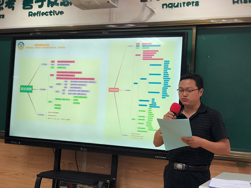 該課題項目負責人紀嵐校長致辭,就本校和融教育課程圖、家校課程與德育課程”做了詳細的介紹。