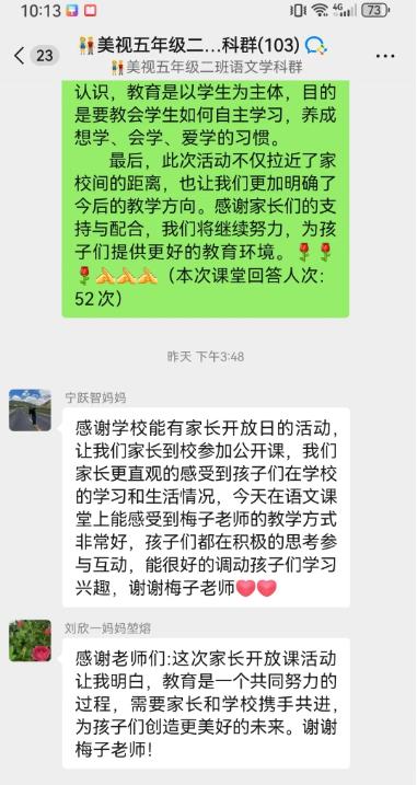在思辨中明理,在篤行中收獲,在實踐中成長,家長開放課活動見證了新課標視域下課堂點亮智慧、家校共識共育的成長樣態(tài)。