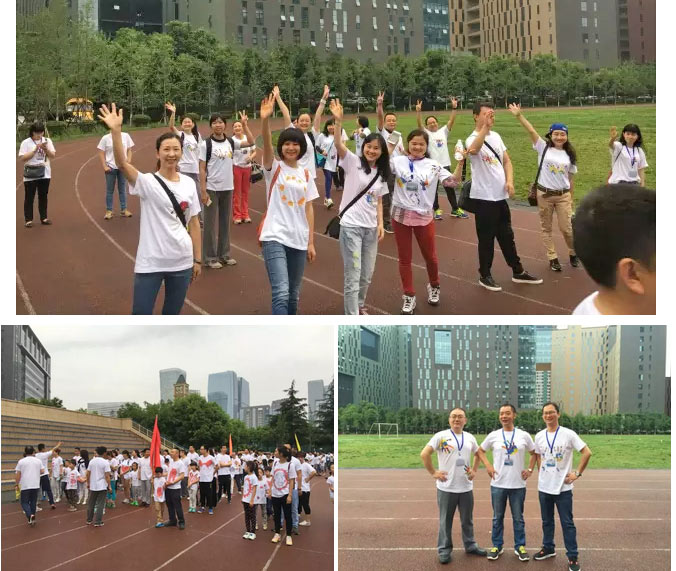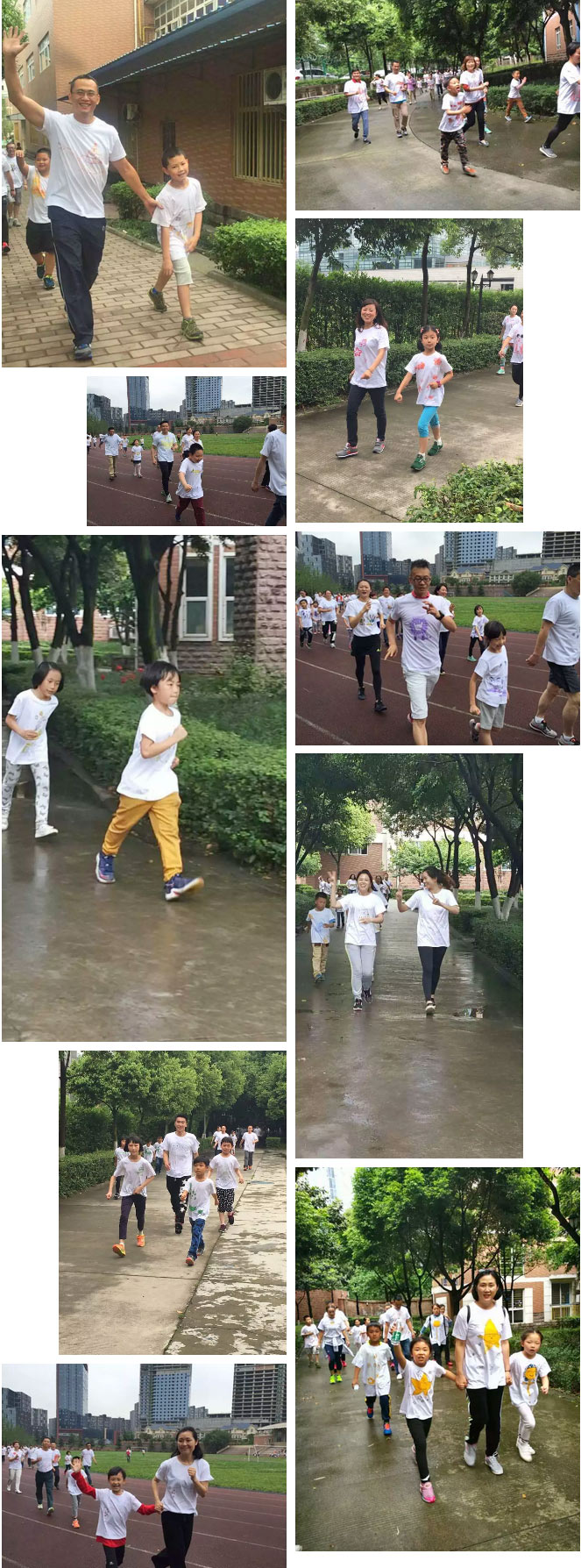 體會(huì)運(yùn)動(dòng)中的成長(zhǎng)根據(jù)此次助理裁判長(zhǎng)——李梓楠同學(xué)的爸爸經(jīng)過(guò)實(shí)地考察,確定路線后。裁判團(tuán)隊(duì)設(shè)計(jì)了總長(zhǎng)度為2千米的環(huán)繞校園競(jìng)走項(xiàng)目。每個(gè)色塊方陣間隔3分鐘出發(fā),以回到出發(fā)點(diǎn)最后一個(gè)成員的時(shí)間來(lái)計(jì)時(shí),旨在告訴所有的參與者:團(tuán)隊(duì)是一個(gè)整體,一個(gè)都不能掉隊(duì)。因此,在團(tuán)隊(duì)行進(jìn)中,親子之間的陪伴,成員間的彼此鼓勵(lì)都是這一旅程中珍貴的體驗(yàn)與記憶。