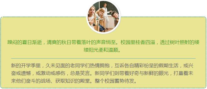 由一個幸福的起點開始,新的學期,我希望能夠像媽媽一樣,悉心入心地陪著這些學生們一起成長,一起面對成功路上的困難荊棘,彼此分享快樂悲傷,在下一個秋天到來之時,收獲累累碩果,把五彩斑斕的童年和青春畫成一幅無悔的圖畫!