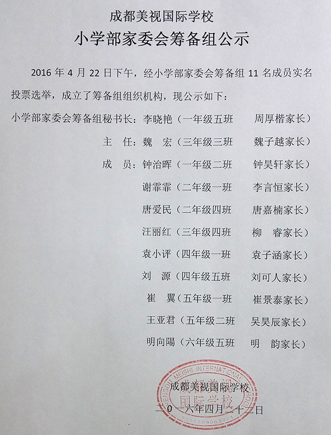 小學部家委會籌備組公示