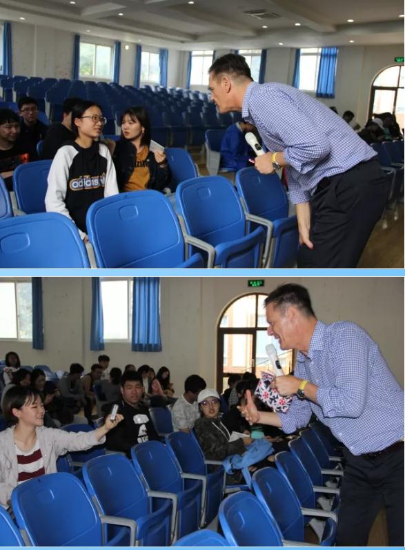 為了暖場,他竟和同學們玩起了搶答游戲。