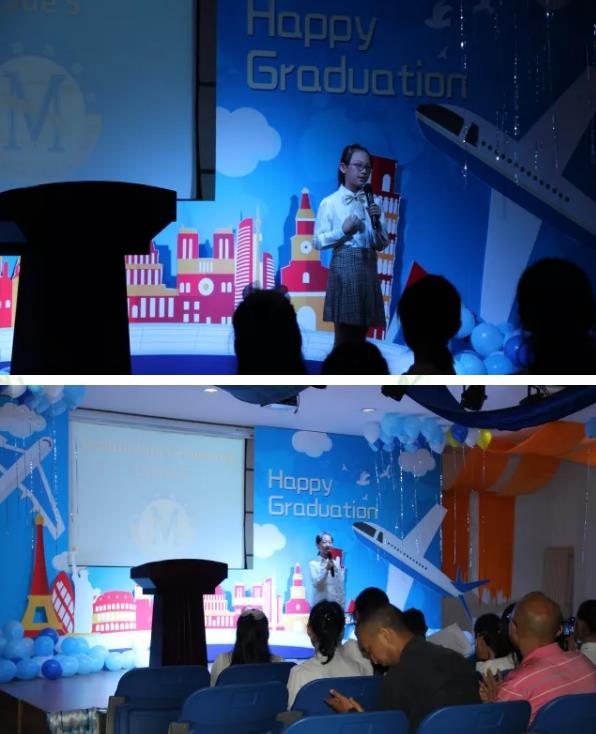 Coco Xu 、Janice Xu代表全體畢業生感謝同窗的陪伴與幫助。所有一起爭論、奮斗、奔跑的日子都是回憶里濃墨重彩的圖畫。感謝老師孜孜不倦的教誨,豐富了我們的知識,開啟了我們的夢想。