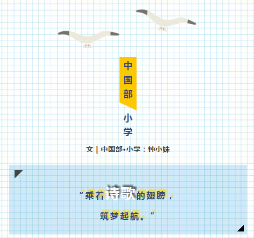 正所謂“詩者,志之所之也。在心為志,發言為詩”。中國部·小學全體師生用他們共同的聲音“乘著詩歌的翅膀,筑夢起航”,點燃了9月邁入新起點的火焰。