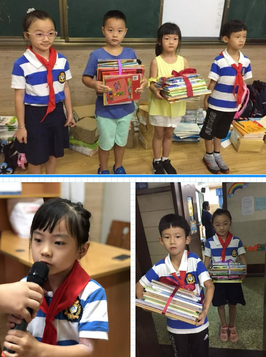伴著秋日如畫的詩句,想象著醉人美麗。二年級的哥哥姐姐們也在此刻將友誼傳承。他們為一年級弟弟妹妹們送來了讀過的圖書,用書聯系著彼此的情誼,并且送上一句句真誠的祝福,打開了一扇又一扇通往知識的大門。