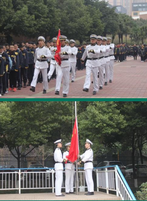 高二國旗隊隊員們英姿颯爽,堪稱全體學生的表率。