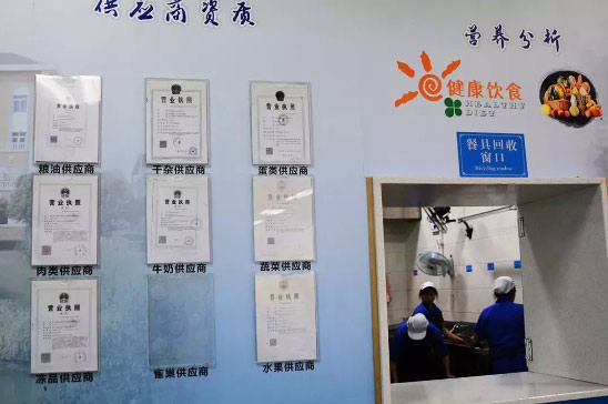 學校供應商從政府“采購平臺”上推薦的供應商中選擇,全部實行公開招標。如肉類供應商是世界500強“麥德龍”供應商。所有供應商的資質(zhì),一年一審,公示于生活中心一樓大廳。