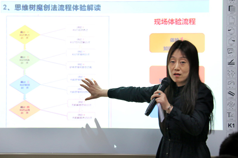 “思維樹魔創法是成都市知名教育專家楊能生四十多年潛心研究的心血。” 學校董事會執行董事陳頎介紹,該項目以思維樹的形式,著眼于關鍵詞、關鍵績效指標的教學方法,最大限度的提高學生的學習效率?;睘楹啠_領悟,逐步提高學生的學習成績。這一項目科學系統,操作性強,效果顯著,希望思維樹魔創法能夠在美視師一學校的沃土生根、發芽、開花、結出豐碩的果實。