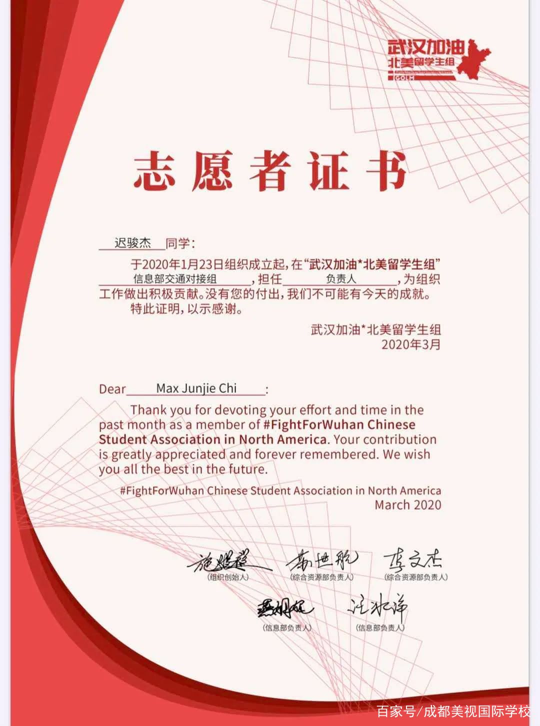 當疫情爆發時,遲駿杰等很多北美留學生都通過微博, 微信公眾號和電視新聞了解到了情況的危機,以及前線焦急的情況,十七年前非典爆發的時候許多人無能為力。但是如今,像遲駿杰這一代人已經幾近長大成人,也有了力量,也想去保護祖國,當時的遲駿杰覺得自己不能眼睜睜的看著這些事情而不出一份力。于是看到朋友圈有人轉發了這個志愿的信息,遲駿杰想都沒想就直接報名參加了——這正是一個可以付出自己力量的機會。