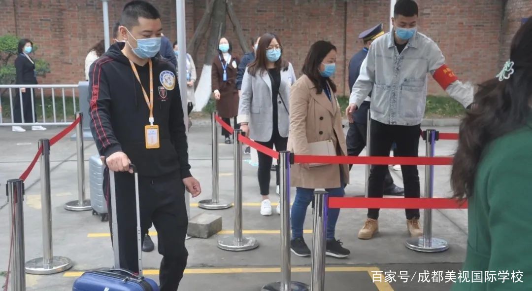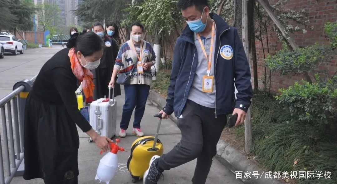 入校,從確認健康碼、物品消殺到有序列隊,“學生們”個個有模有樣,一切行動聽指揮。在兩位班主任的帶領下,行進有距,測溫入校。