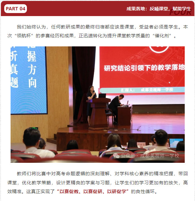 此次在成都高新區(qū)“領(lǐng)航杯”團(tuán)體賽中的輝煌戰(zhàn)績(jī),是美視師一高中教研之路上的一個(gè)閃亮坐標(biāo),但絕不是終點(diǎn)。它是對(duì)我們過(guò)去努力的肯定,更是對(duì)未來(lái)發(fā)展的鞭策。