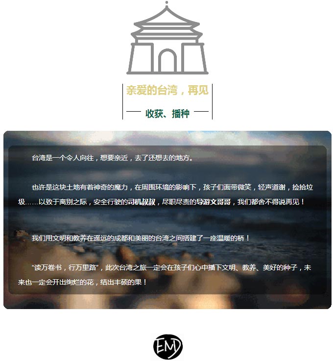 在初到臺(tái)北的第一天晚上,我們的老師就跟孩子作了約定——“我是國際小公民!我們是來自成都的最美的風(fēng)景線!”