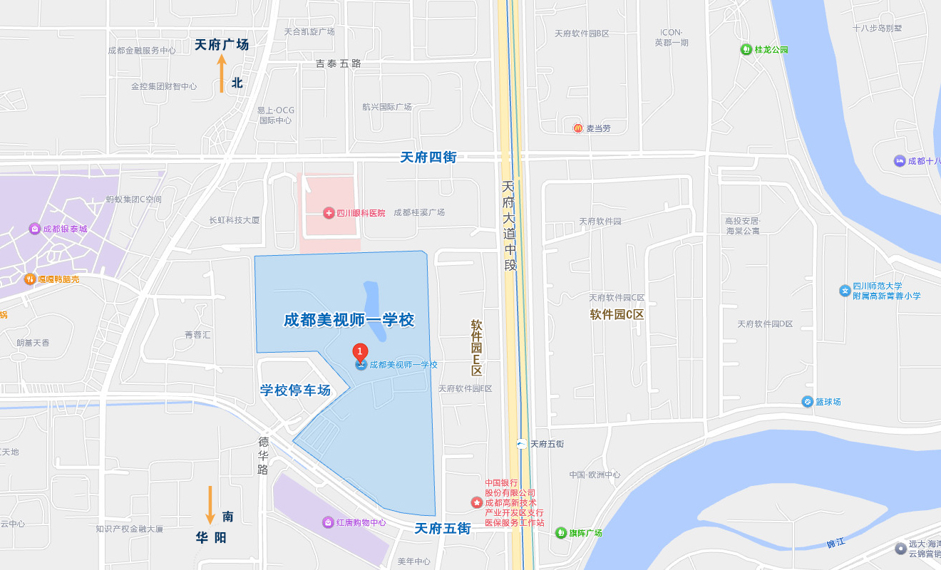 學校地址:中國四川成都高新區天府五街148號(校外停車場)     天府大道中段1340號(地鐵天府五街站)